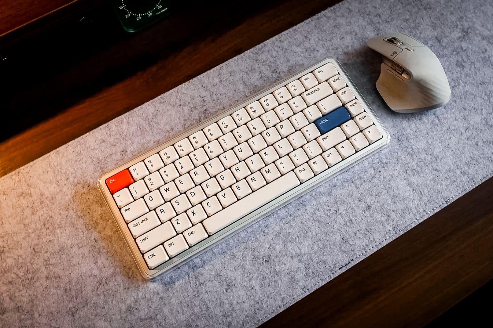 When we talk about "Retro Future," the MelGeek keyboards (specifically the "Plastic" see-through models) are exactly what comes to mind. It looks like a computer terminal from an 80s sci-fi anime, featuring a transparent case, retro off-white keycaps, and bright orange accents. It’s visually loud in the best way possible. Typing on this is a joy. It has that "thocky," deep sound profile that makes writing scripts or answering emails feel satisfying. Unlike the low-profile boards I sometimes use for travel, this one sits on my desk as a statement piece. It reminds me that technology can be fun and expressive, not just a slab of grey aluminum.